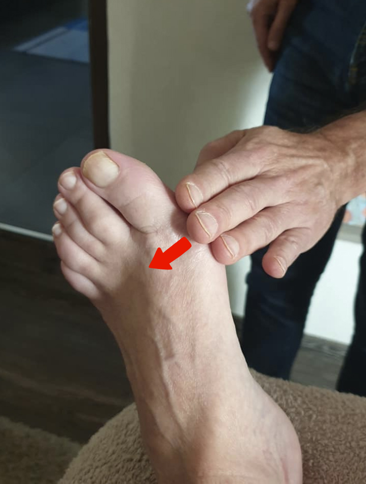 Interrogación transversal de la dermis (interna) de la articulación metatarsofalángica del dedo gordo del pie (foto 2).