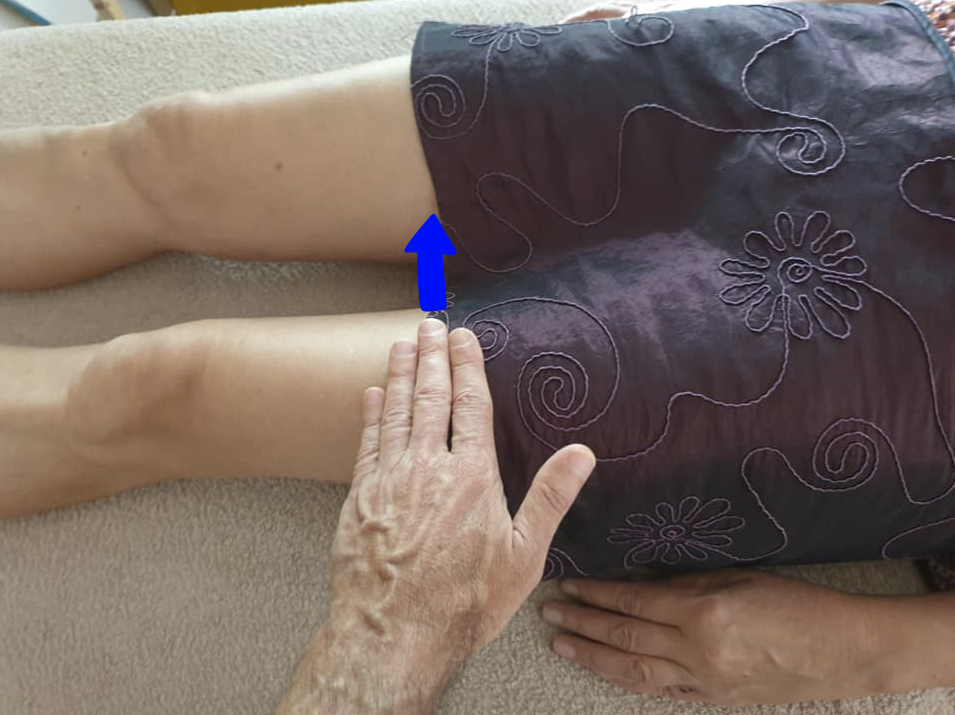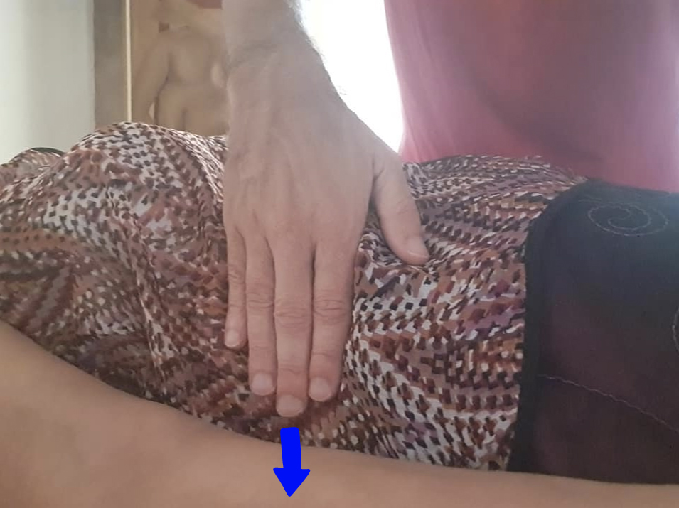 Interrogatorio transversal en la superficie (epidermis) con los dedos de una mano en el centro (foto 4).