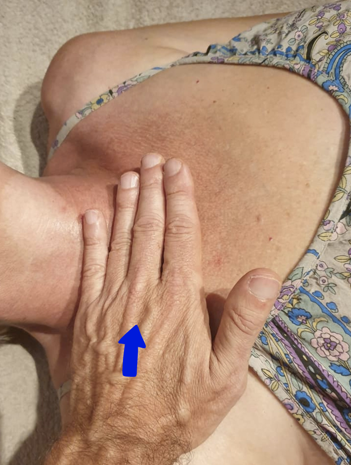 - Interrogatorio en la superficie de la clavícula con la palma de la mano (foto 2)
