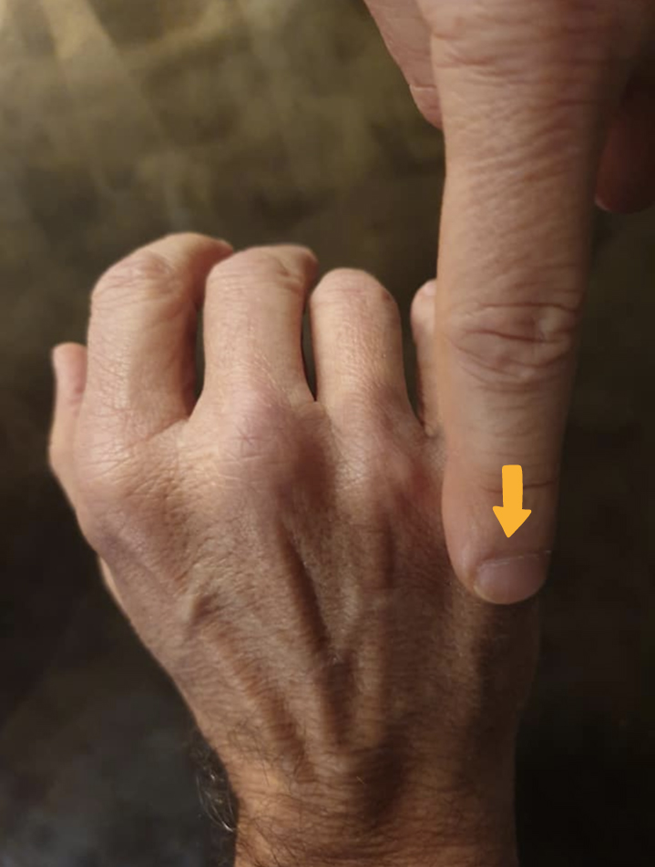 Foto 2: La corrección se realiza con una mano en el punto, la otra buscando un área específica conectada al punto en la región del vértice