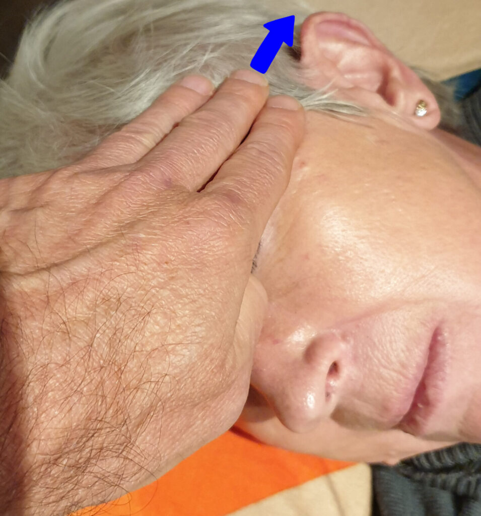 Se lleva a cabo mediante un interrogatorio transversal en la superficie (epidermis) del ala grande de los esfenoides (foto 1).