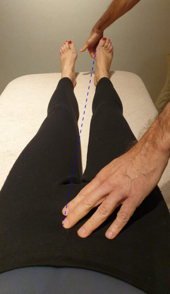 Este punto constituye una conexión a tierra. Por lo tanto, permite el anclaje a la tierra de la persona, su enraizamiento.