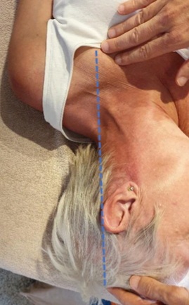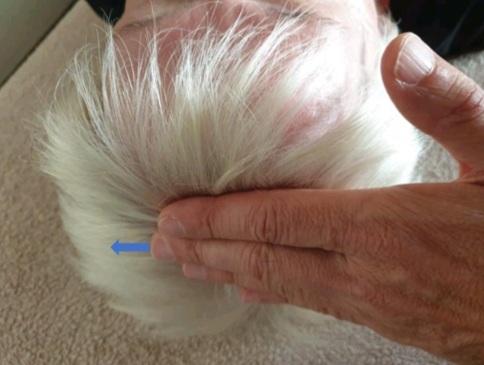 Se realiza colocando una mano sobre el punto cerrado correspondiente a la función de energía perturbada del lado bloqueado en el control general, la otra mano recorre la región del vértice (parte superior de la cabeza) en busca de una « cuerda » entre las 2 manos: el terapeuta tiene la sensación de que sus 2 manos están conectadas por una cuerda, Entonces no hace nada más y espera su relajamiento en los siguientes segundos (foto 3). El punto está abierto de nuevo.